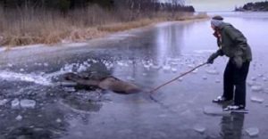 Wyobraź sobie, że jesteś na spacerze w okolicach jeziora. Nagle widzisz ogromnego łosia, który utknął…